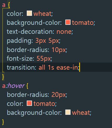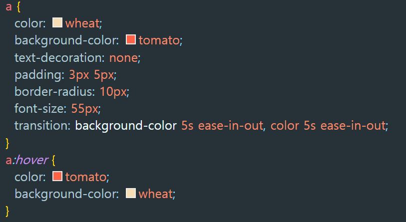(변경되는 속성은 둘 사이에서 변하는 값만! 예시를 참고하면 a 와 a:hover 둘 다 가지고 있는 속성)