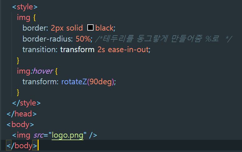 img 태그에 CSS 효과 중 border값을 주고 border-radius: 50%; 을 하면 직사각형이던 border가 동그라미가 됩니다!