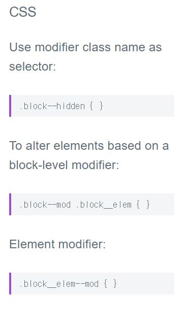 (모디파이어는 기존에 있던 Block에 더해준 추가 클래스 이름입니다. 수정되는 블록,요소에만 한정자 클래스를 추가하고